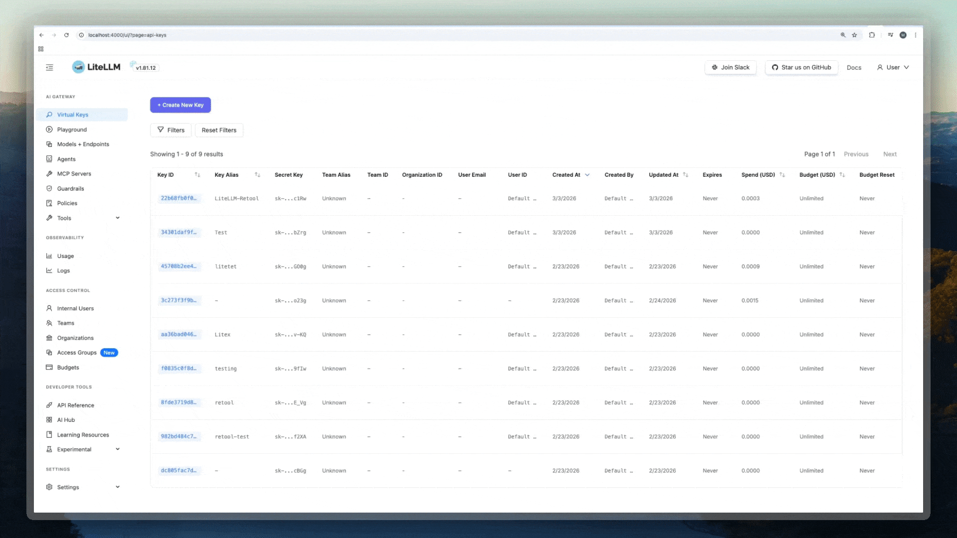 - Virtual Keys – Create and manage API keys